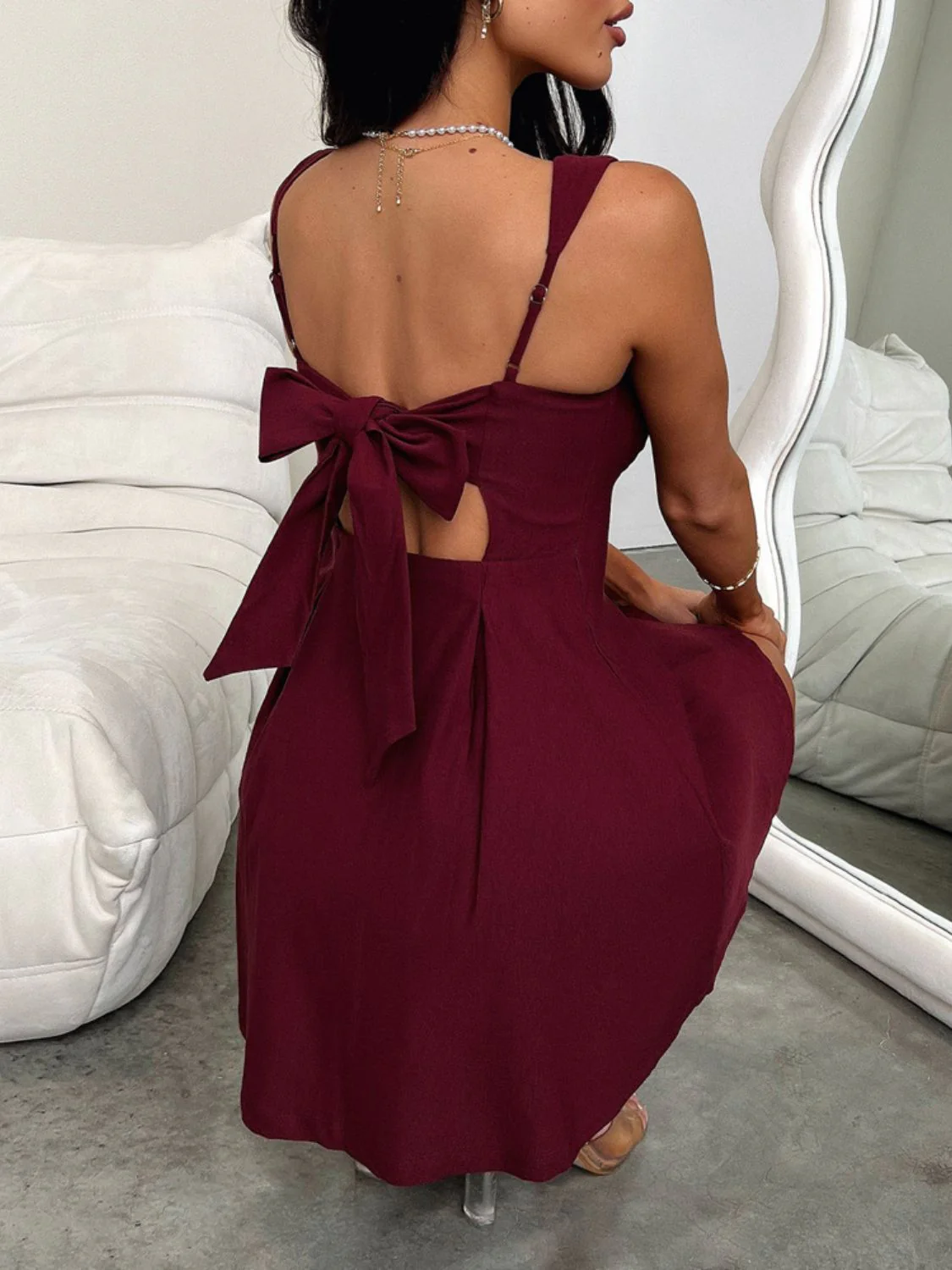 Introducing the Bow Back Square Neck Mini Dress, a must-have addition to your wardrobe.