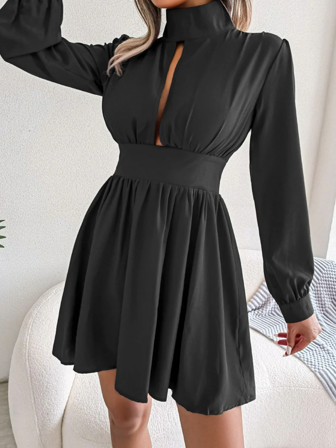 Introducing the Cutout Turtleneck A-Line Mini Dress