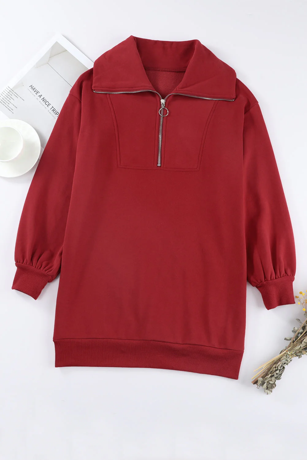 Introducing the Half Zip Dropped Shoulder Mini Sweatshirt Dress, a unique and stylish addition to your wardrobe.