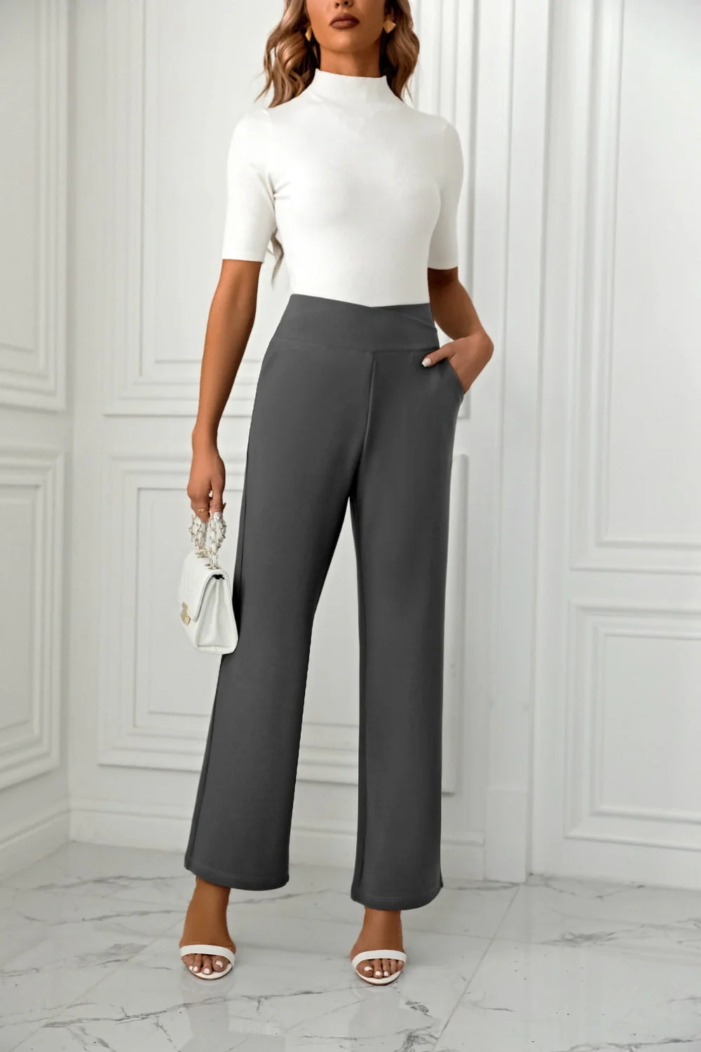 Introducing our Trendy and Affordable High Waist Straight Leg Pants, the perfect addition to your wardrobe for a stylish and comfortable look.